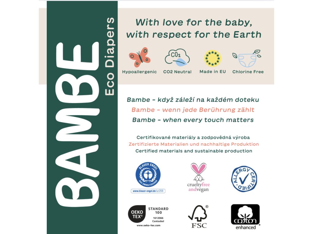Bez chloru, parabenů a parfemace. S dotykovou vrstvou z materiálu rostlinného původu.
